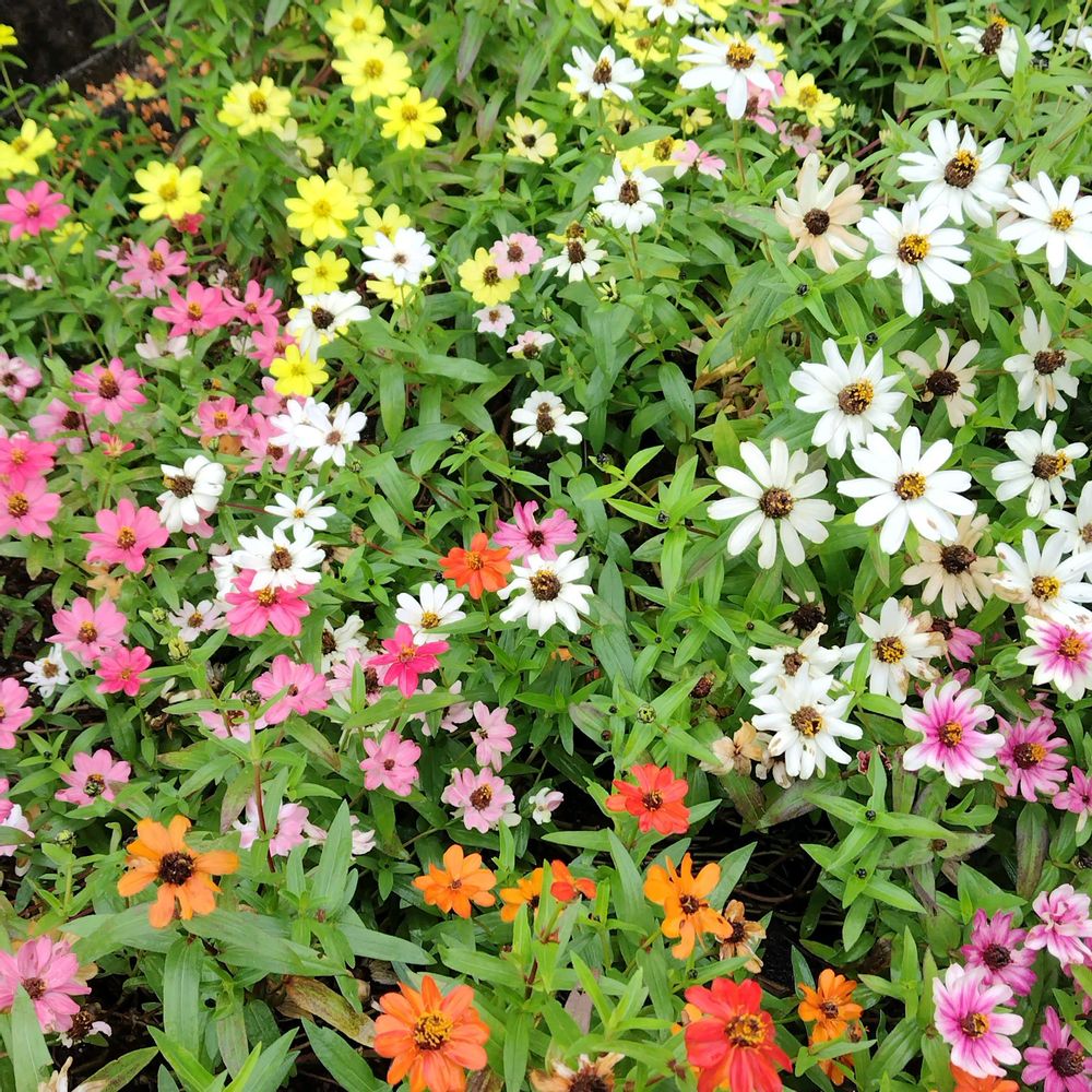 まだジニアさん咲いてました〜…!!💛🧡🏵️🩷🤍💗🧡🏵️💛🌿🌱😍🤗✨️