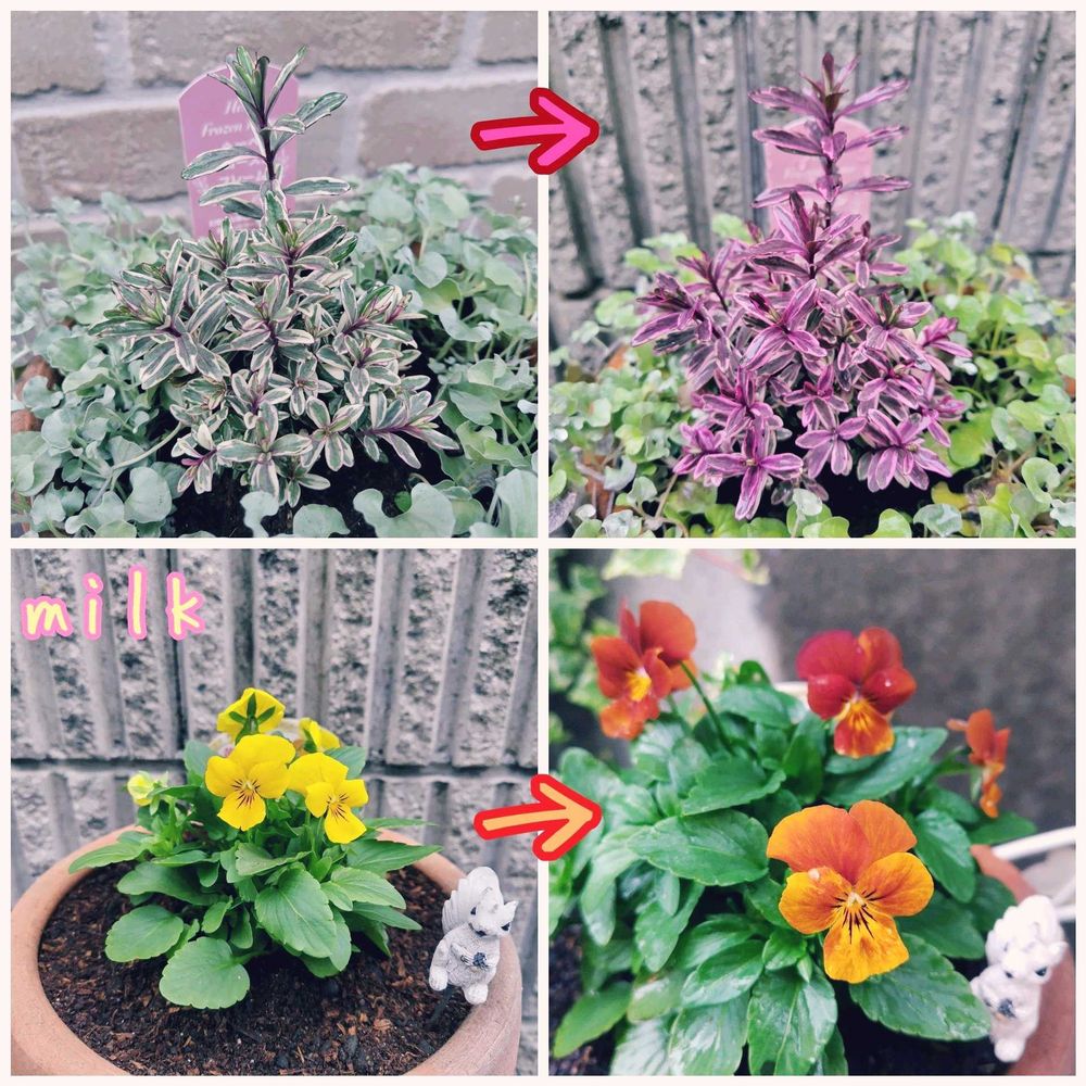 コメありがとうございます❤写真をコラージュするまで、色の変化に気付きませんでしたꉂ🤣𐤔ビオラさんたちは 毎年 春まで楽しませてくれるので大好き︎💕