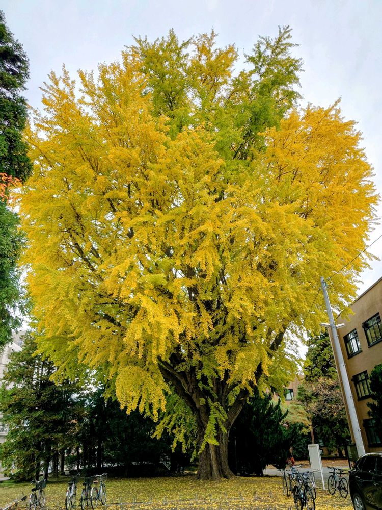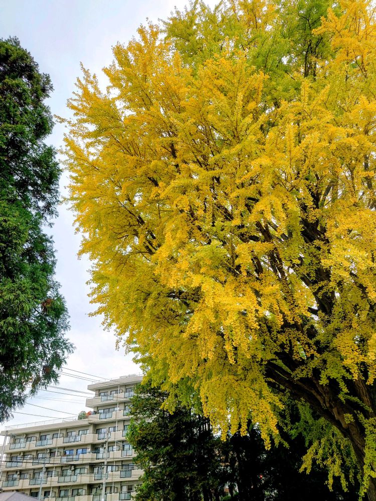 今日の午前、市内を散歩途中に見かけたイチョウ。