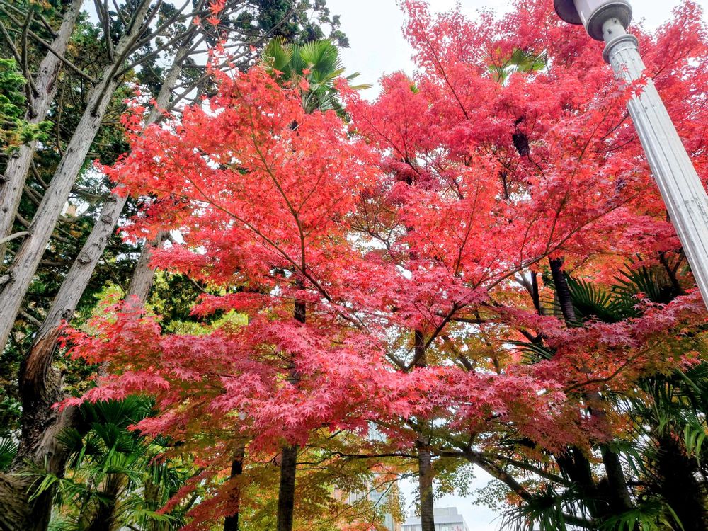 今日の午前、市内を散歩途中に見かけたモミジ。