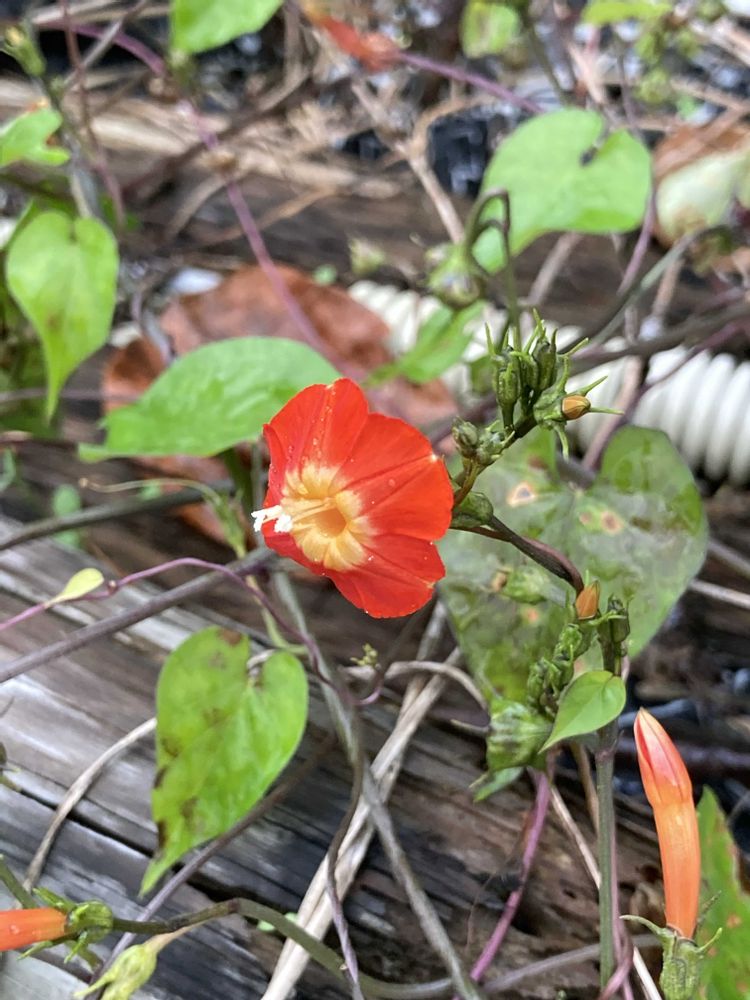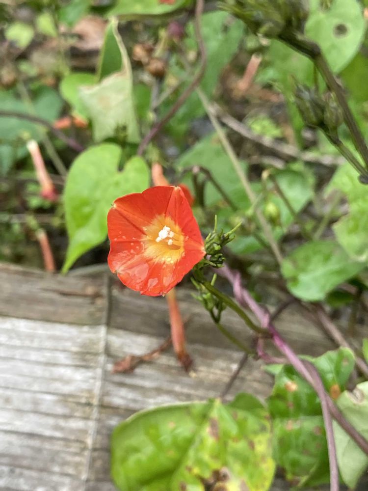 この赤とも橙色ともつかない花色が魅力的なお花です。北アメリカ原産で江戸時代に帰化したとのこと。畑の生育阻害など引き起こすそうで、ちょっと困ったチャン🤗