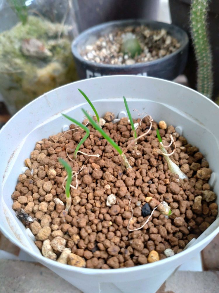 寒くなって皆さんが、投稿始めると、私も少し水やりしました。そしたら、オバQの髪みたいなのが出てきましたよ😅