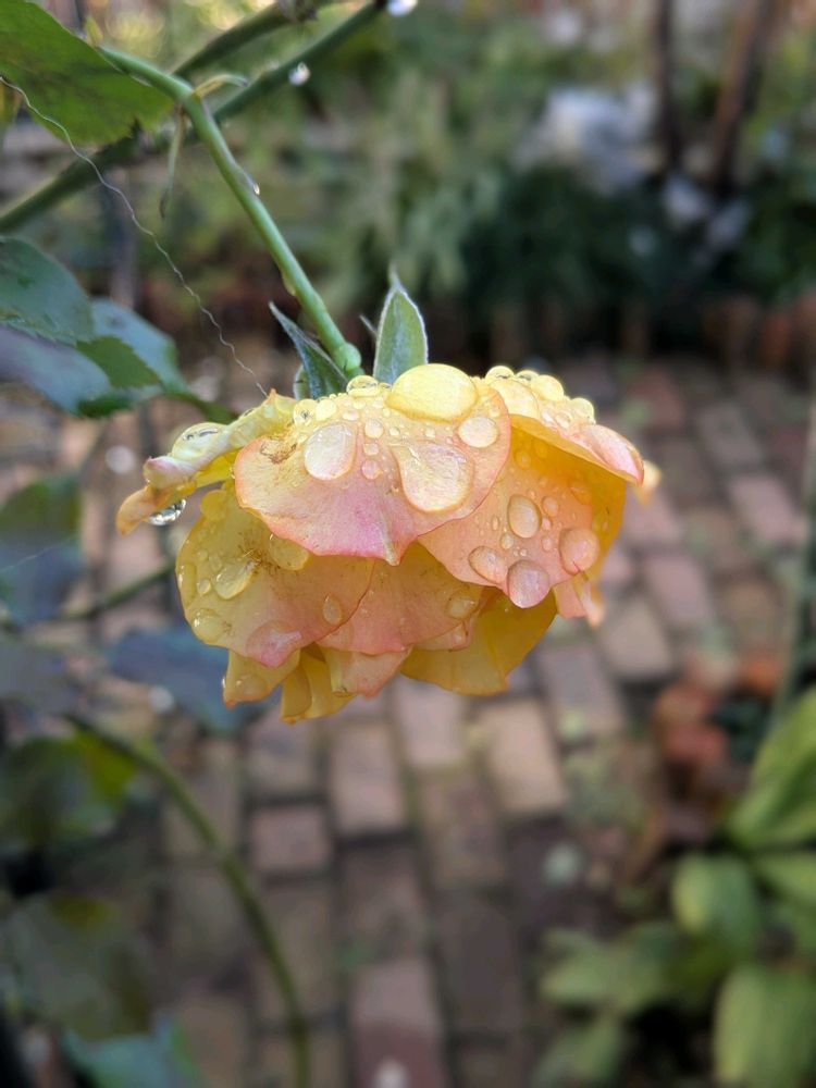 pic①の薔薇🌹サンは雨に打たれても可憐です🧡💛