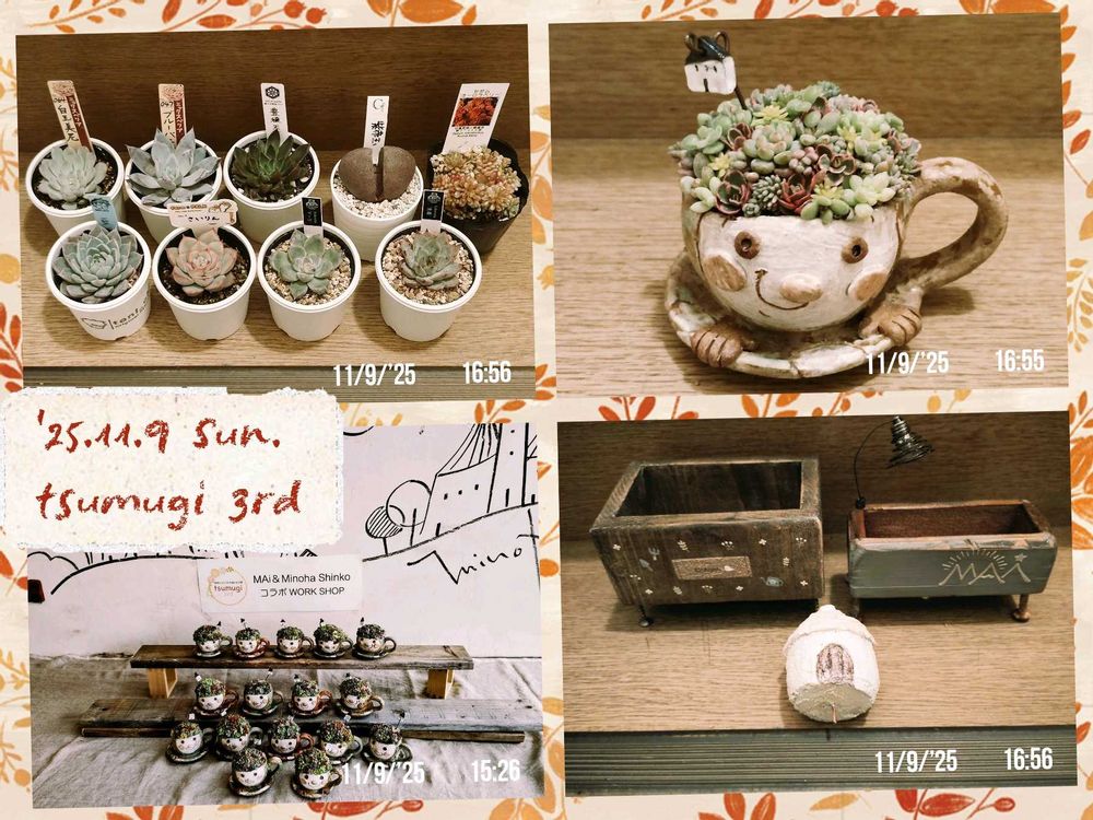 ちょっとしたアクシデントで約40分遅れのスタートでしたが、多肉狩りや雑貨の購入、MAiさんのWSでセダムのちまちま寄せ植えに参加したりとフルに楽しめました😊