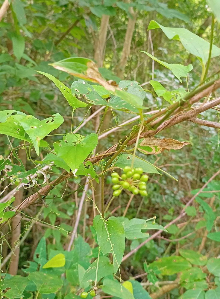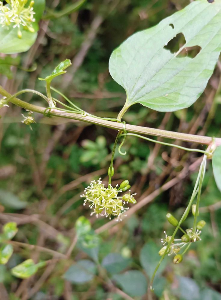葉柄は長さ1〜2.5cmで、基部に托葉の変形した、巻ひげがあり、これで絡みつく。
