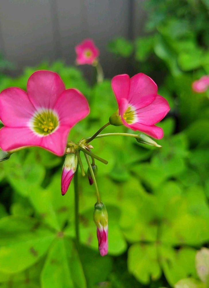 朝は雨降りオキザリス(カタバミ)達は雨に耐えていますꉂ🤣𐤔