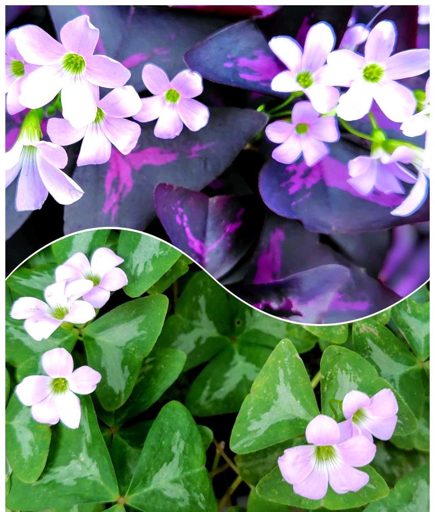 我が家のオキザリス·トリアングラリス…紫の舞💜(↑)と銀の舞💚(↓)です。お花はどちらも淡いピンクで同じですが…三角形の葉っぱのお色で全く違う印象ですネ。わたしは紫の舞の方が艶っぽい感じで好きですが…皆さんはどちらがお好きでしょうか🤗