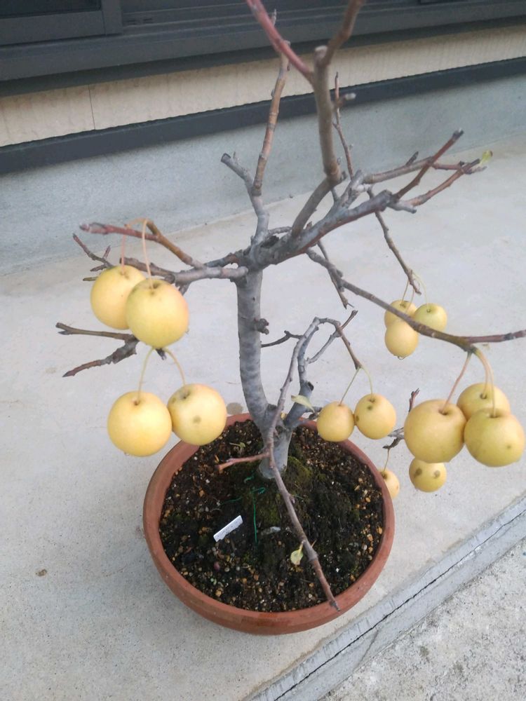 カイドウで受粉し、たくさん実が着きましたが、生理落果が多く 見栄えがしません😢