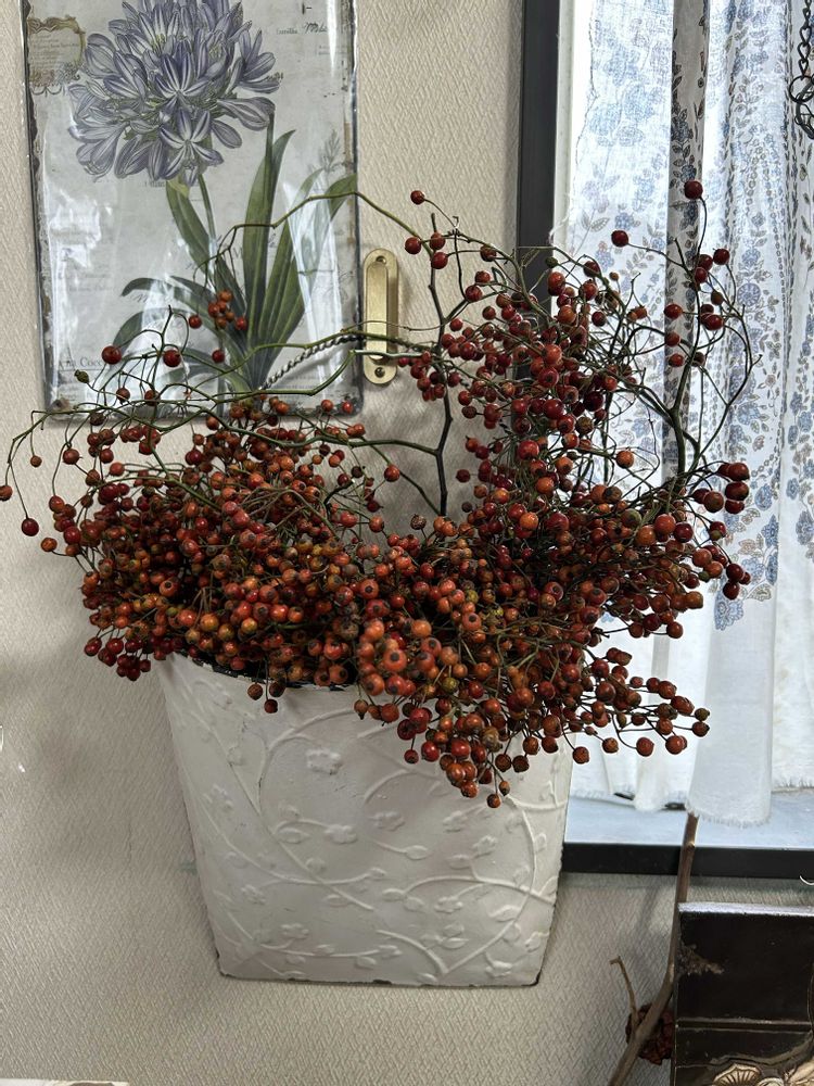 あと買って来たバラの実の枝をカットして飾ってみました❤️かわいい💕
