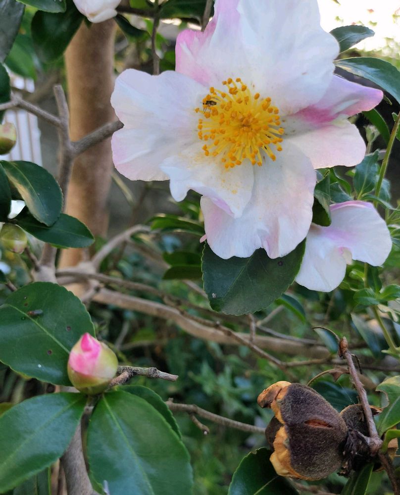 大分に住んでた時はピンクのサザンカ🩷が生垣だったの。