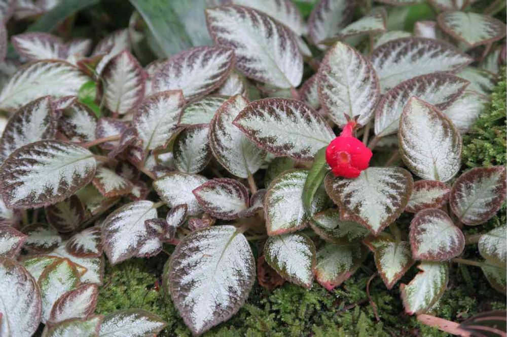 ハナキリンのような可愛いお花ですねꕤ*.゚産毛は、みえないけど可愛らしさが伝わってきます。葉っぱの模様にもうっとりですね。熱帯の植物なのかな?