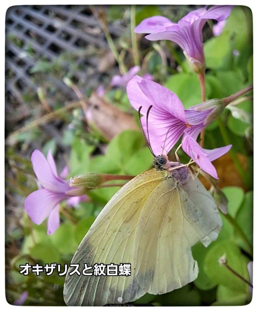 オキザリス☘️🌸☘️と紋白蝶🦋とっても 心地良ぃ〜🙆🎶