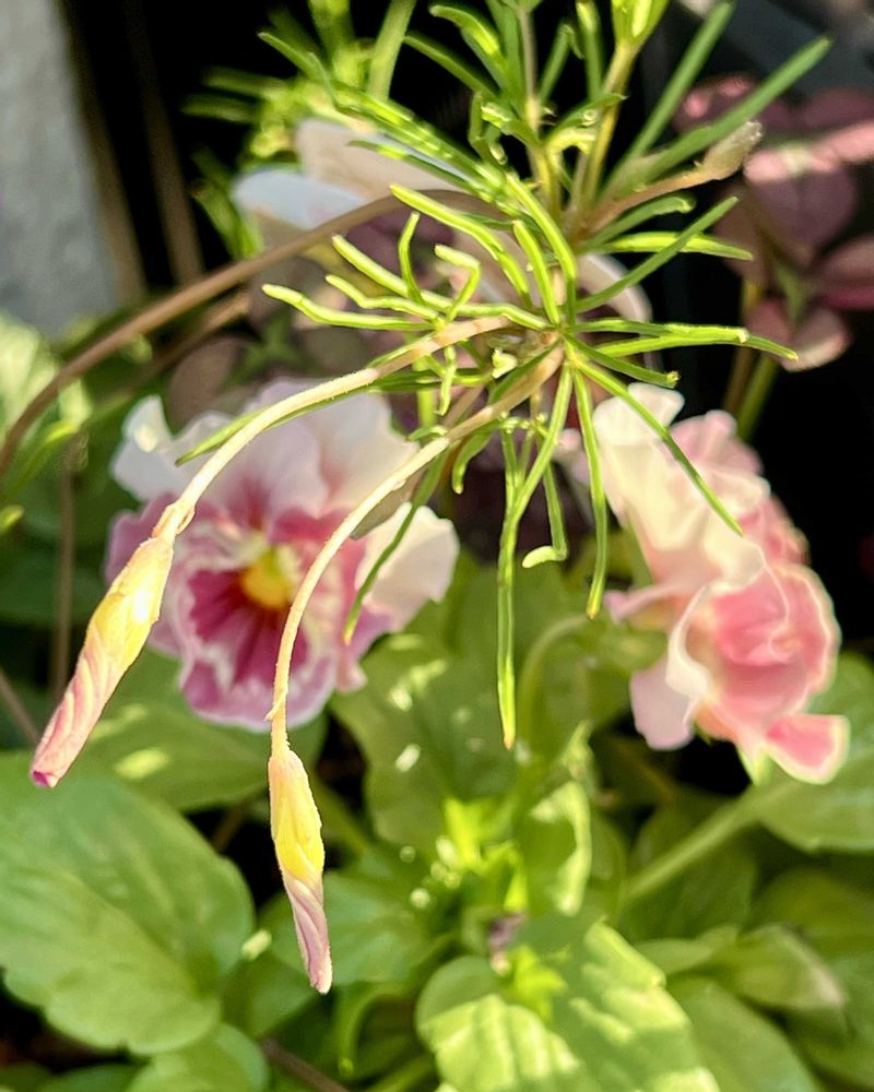 芽が出てきたので ビオラの鉢に加えてみました😊