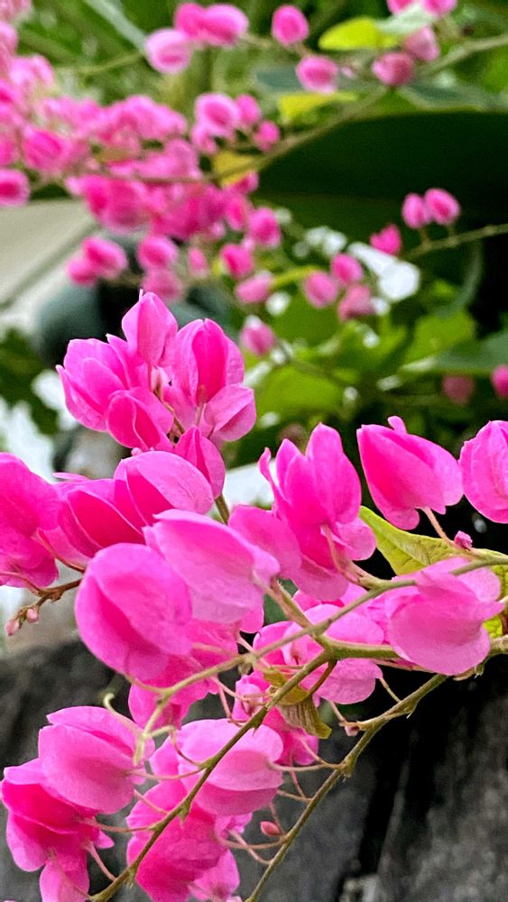 鮮やかなピンク色の花は1つの花序に10輪以上付き連なる様に咲いていて…簾のように垂れ下がっている花やネックレスの様に輪になって咲いていたりと様々ですね💕🌿🩷🌿🩷🌿🩷🌿小さな花ですが…その花姿は鮮やかでとても綺麗です🌿🩷🌿🩷🌿🩷🌿✨😍