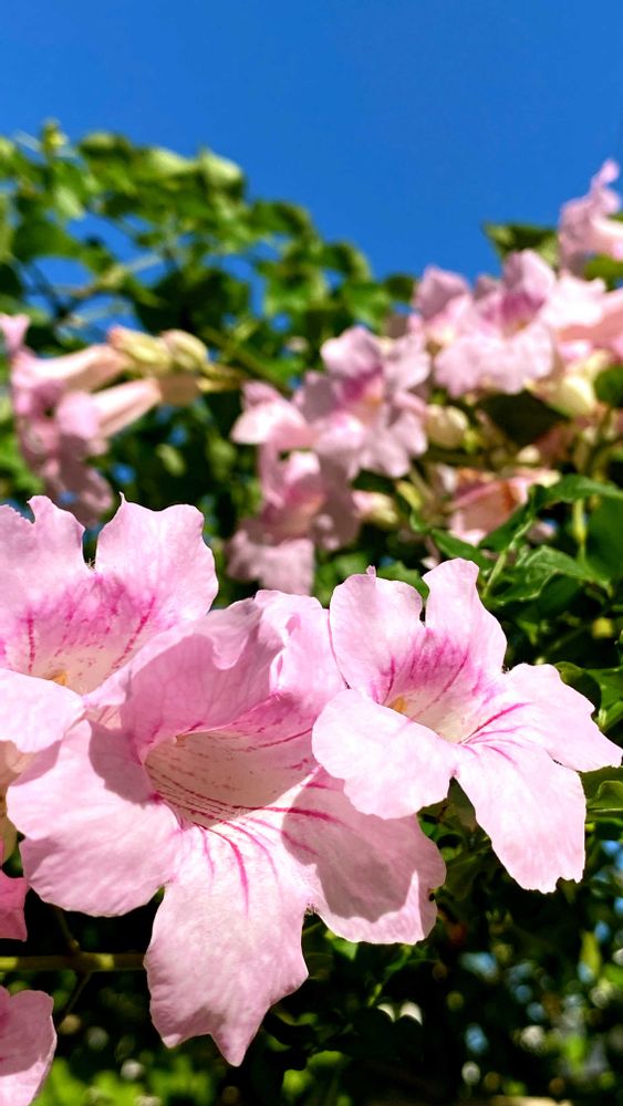🌸お花はトランペット形(鐘形)の優しいピンク色の花びらで赤紫色の筋入りが素敵です💕🌿🌸🌿🌸🌿😍💕🌿🌸🌿綺麗な花を咲かせてくれて💕ありがとう💕💖🥰
