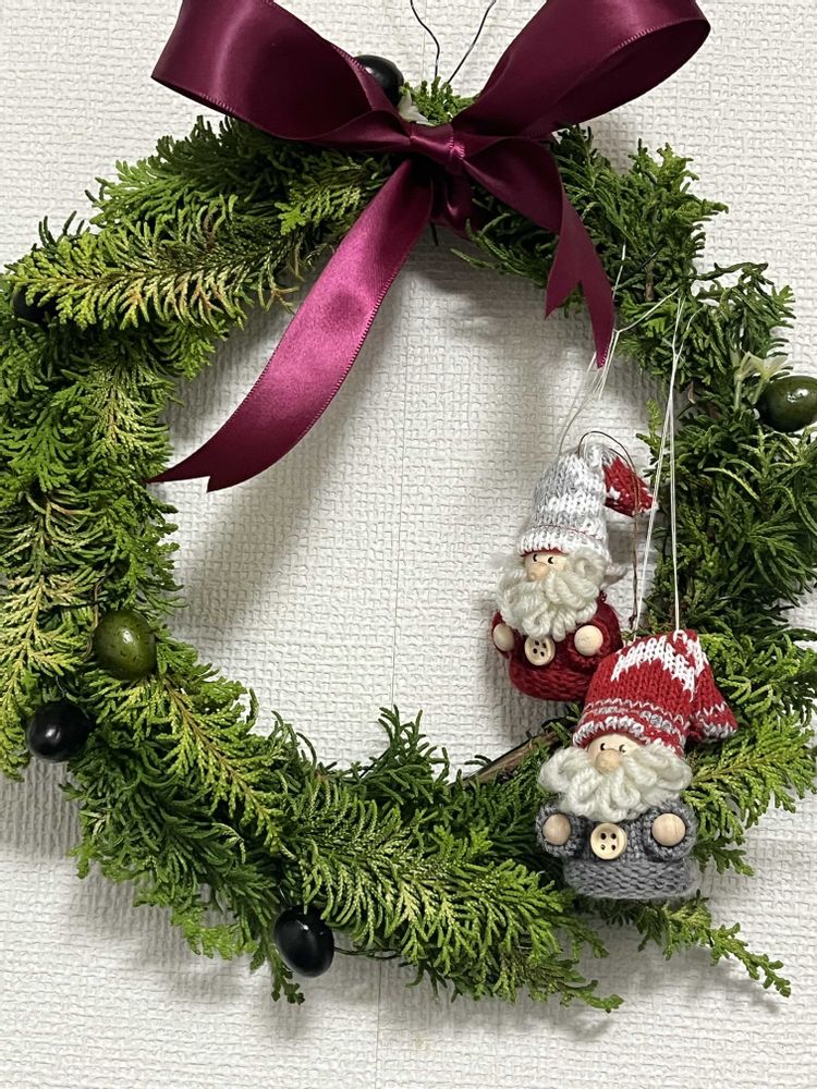 ヒバのリース🎄に可愛いサンタさん🎅🧑🎄と素敵な🎀✨