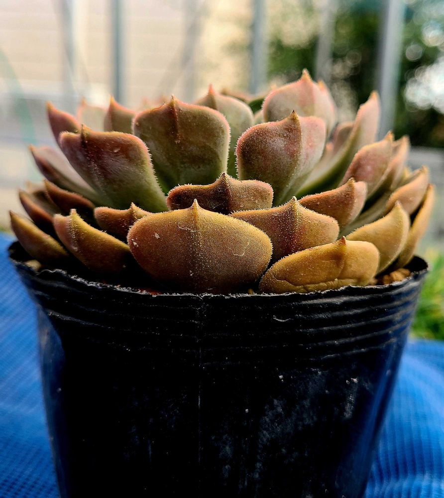 エケベリアの中では形が崩れやすく、葉焼けしやすい。すぐ蒸れてダメになってしまう感じです。