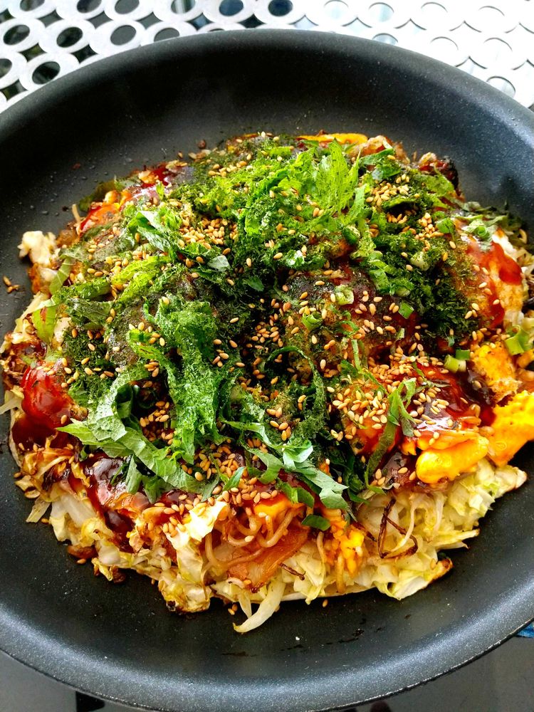 お好み焼き必ずトッピング👍😆💦