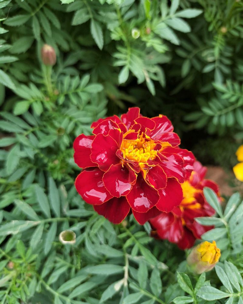 3️⃣真っ赤なマリーゴールドもしっかり濡れたあとでした☺️