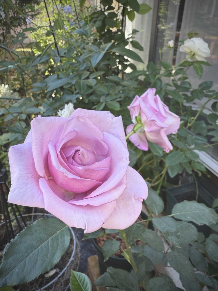 今週はちょっとした外構工事中のため、一旦鉢上げした花たちで庭が雑然としています。