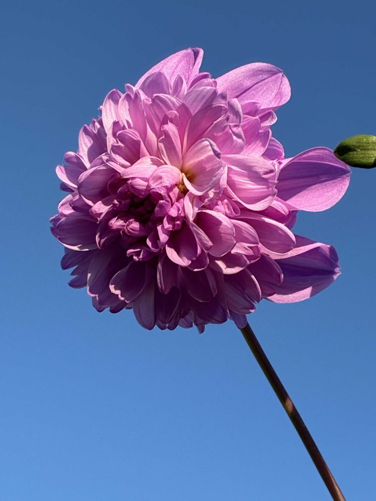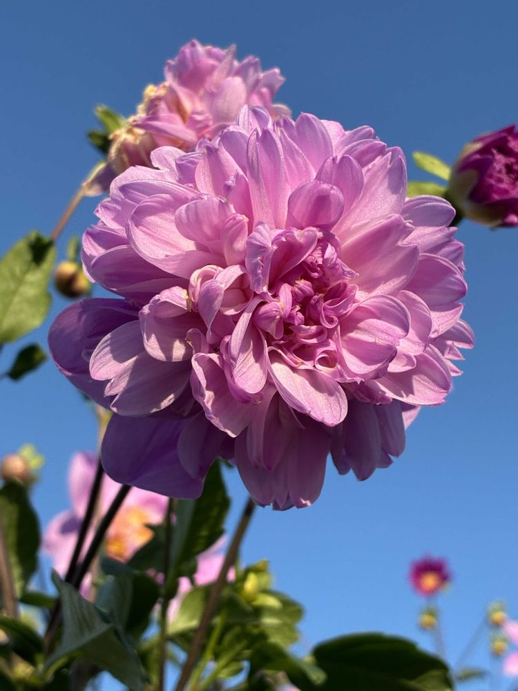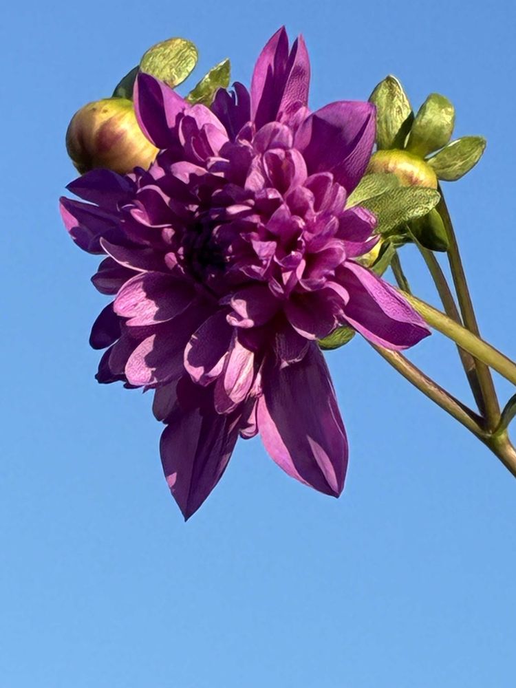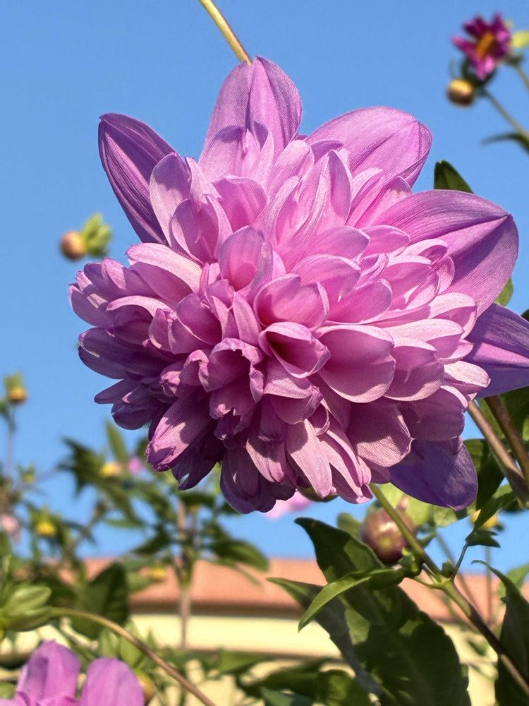 道路沿いの花壇にて、紫色の「八重咲き皇帝ダリア」をパチリ!📸💜🌿😄🤗🌞✌️