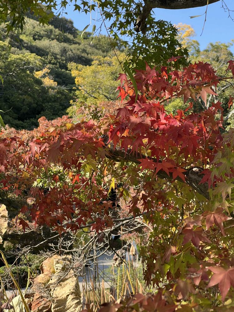 秋の栗林公園にオニギリを食べに行きました。秋のライトアップにはまだ間があるけど、キレイに色づいた葉っぱをパシャリ。