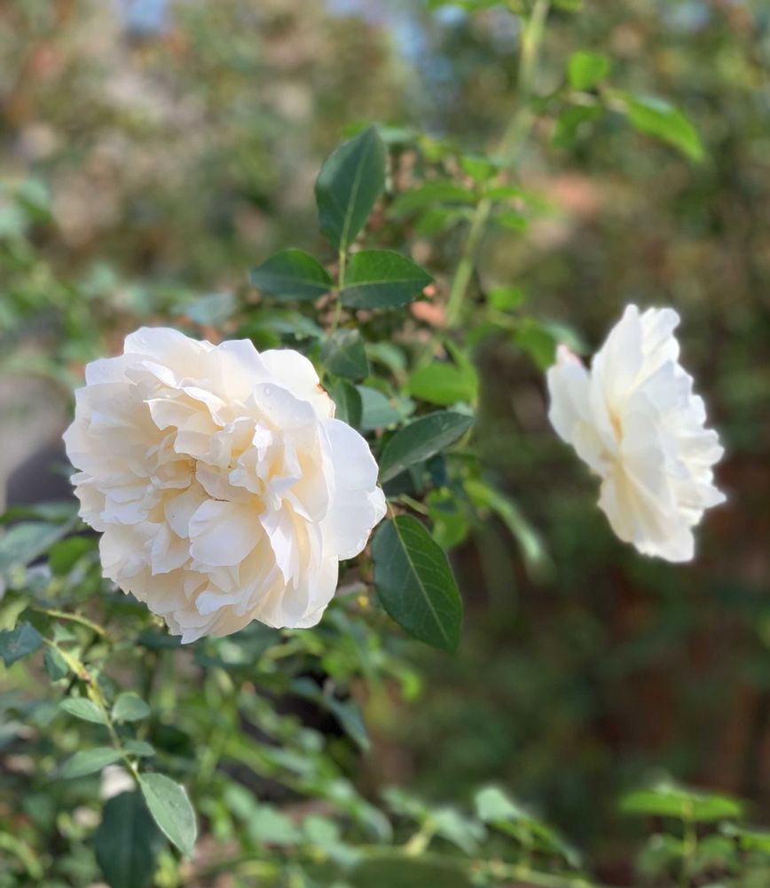 レッチフィールドエンジェルさんは大輪です。枝が暴れます。秋花は透き通るアイボリーホワイト色です。