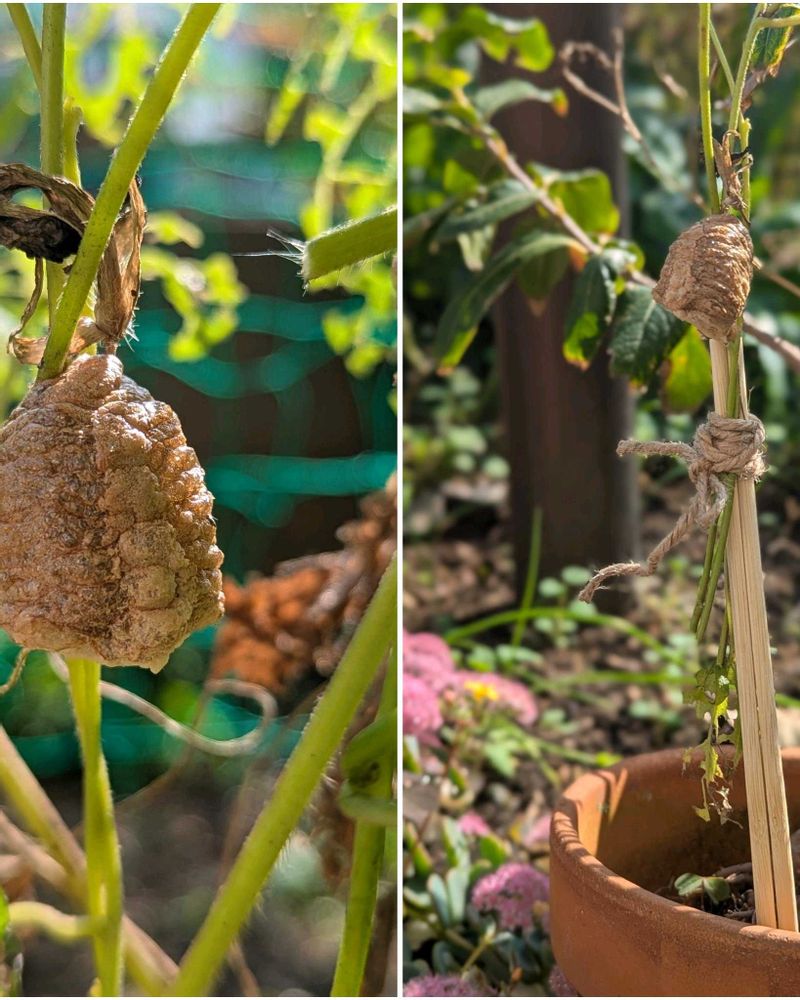 カマキリの卵、くくりつけてあるのが面白い🤭