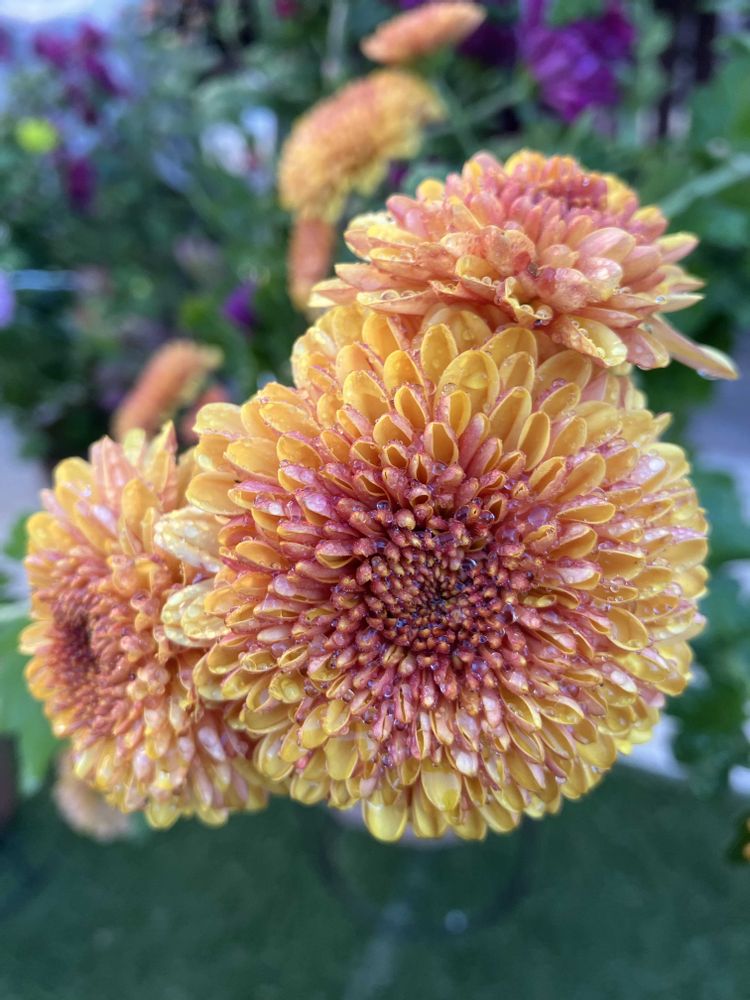 マウントオービスク3色とライムグリーンのマムとオレンジのポンポンマムです🌼