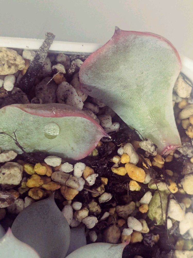 ⑤龍鱗蓮華(おらい)さん葉挿し。カルスから何かが出てきました🎉噂通りよく出る子のようです🤗