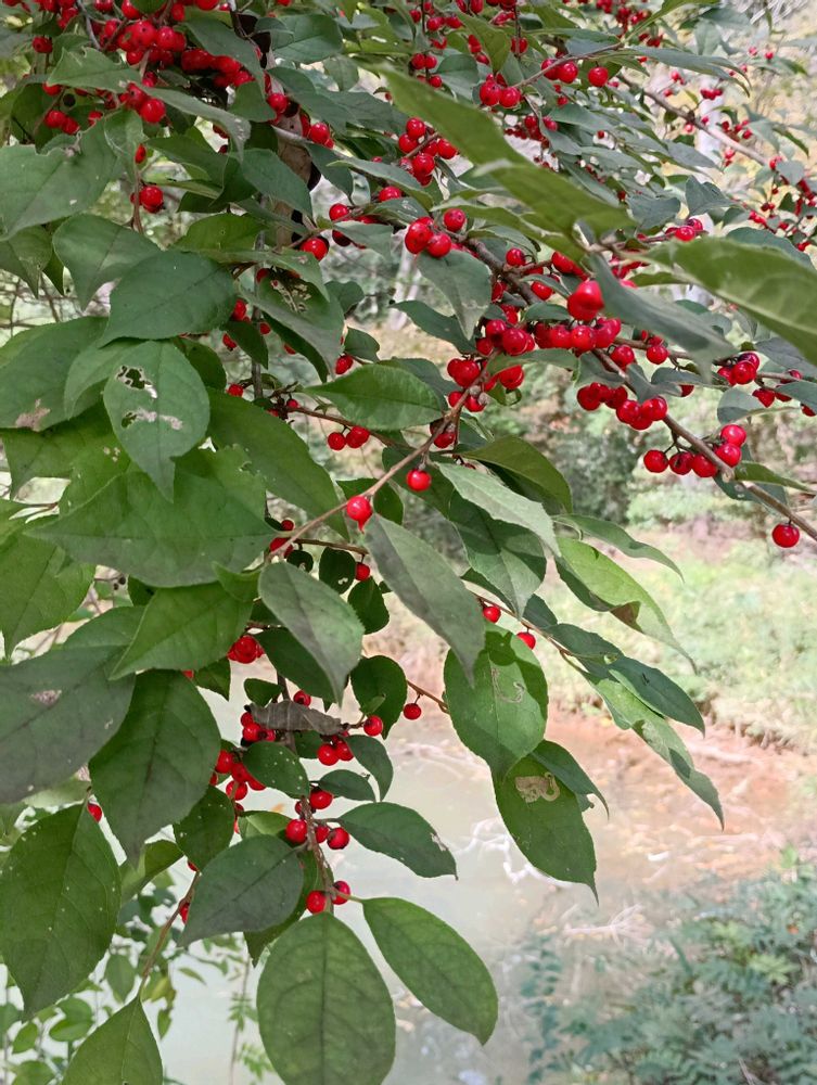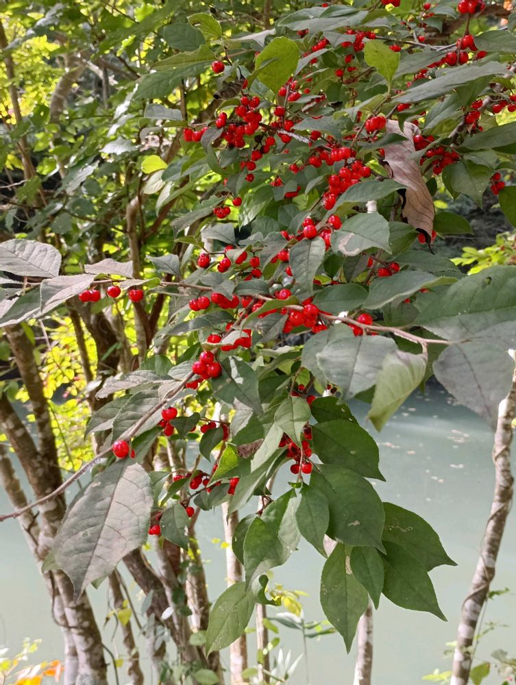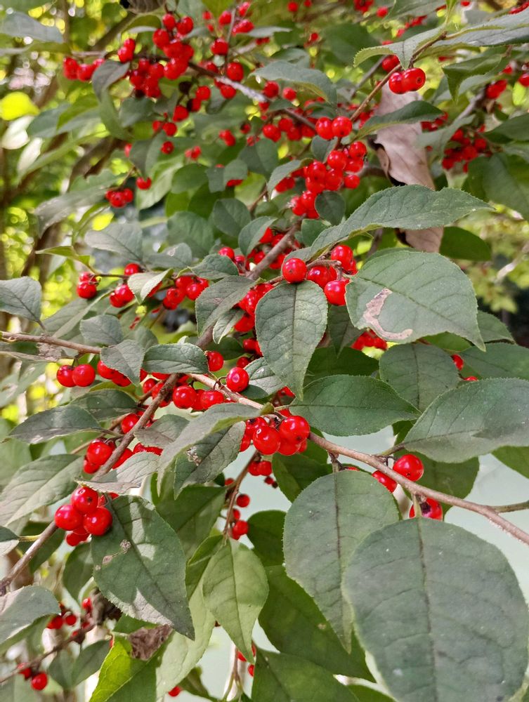 赤い実は、葉が落ちた後も残って、長く観賞できるそうです😆