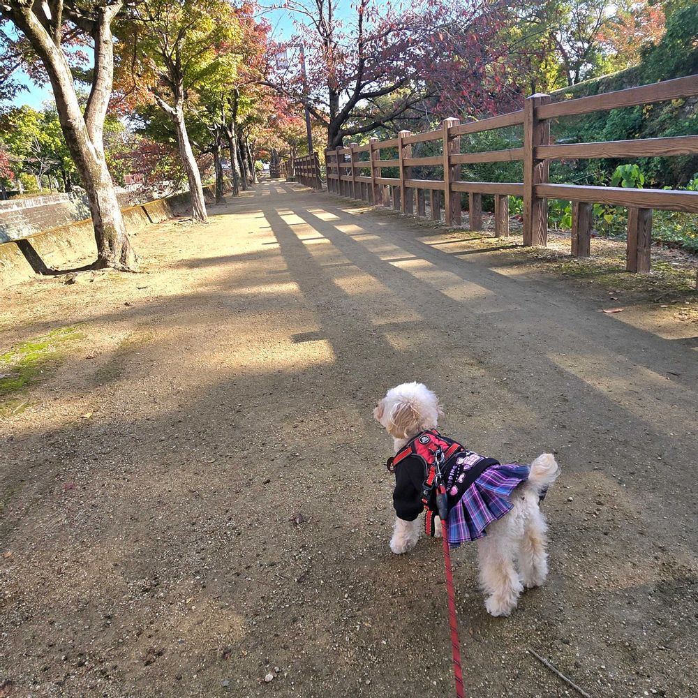 クルミちゃん、素敵なドレスでお散歩なんだね。