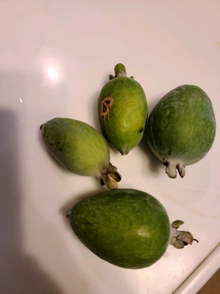 一本しかないため、自然受粉が難しく、花をチョンチョンして人工的に受粉し、今年は何とか4つ収穫出来ました😂味はキューイにレモンの風味を足したような爽やかな感じです☺️