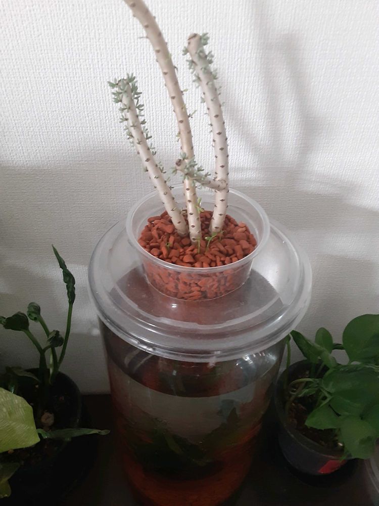 ちなみに、ケラリア ナマクエンシスのアフラ接ぎは失敗したけど、直に挿した水耕はちょっと根っこ出てた。