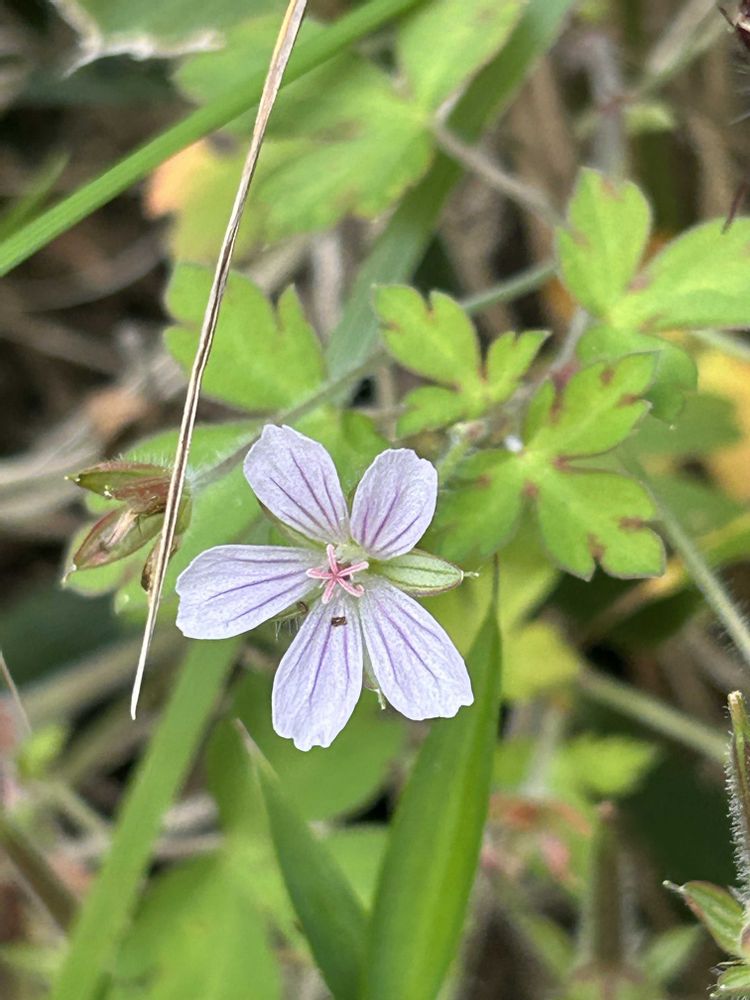 ゲンノショウコを二つ見つけました。もう受粉して雄蕊は見えず、花柱が目立っています。
