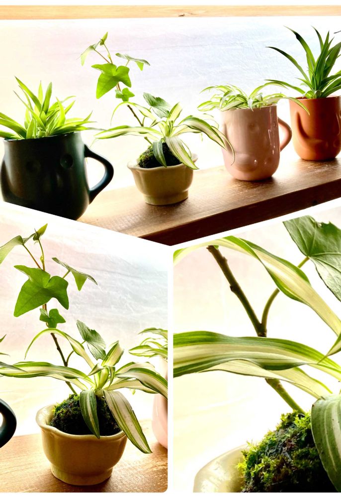 オリズルランとへデラを一緒に苔玉にしてみました〜