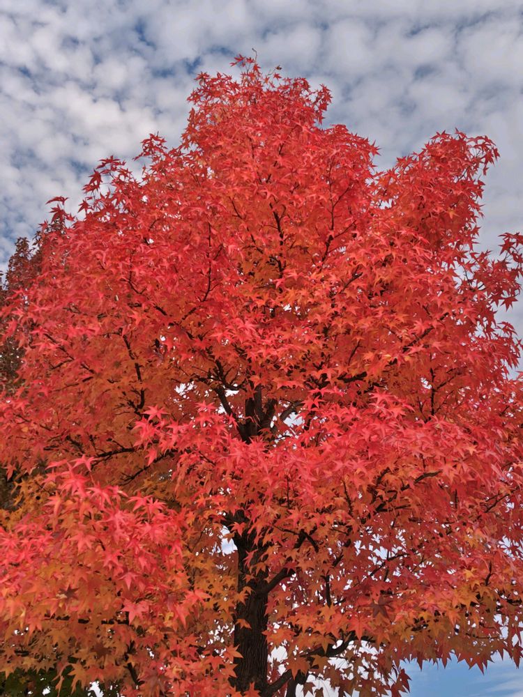 真っ赤、オレンジ、ミックスのモミジバフウ 街路樹になっているのでしょうか⁉️