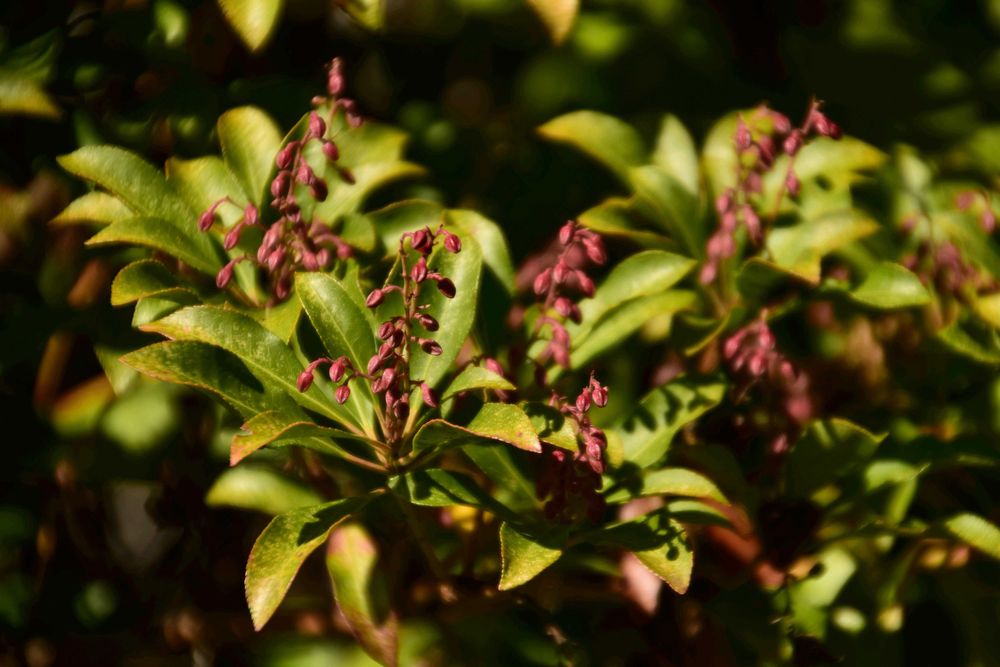 ④スズランに似た可愛い花を咲かせてくれるアセビ(馬酔木)も今はまだ、小さな蕾で早春を待ってます