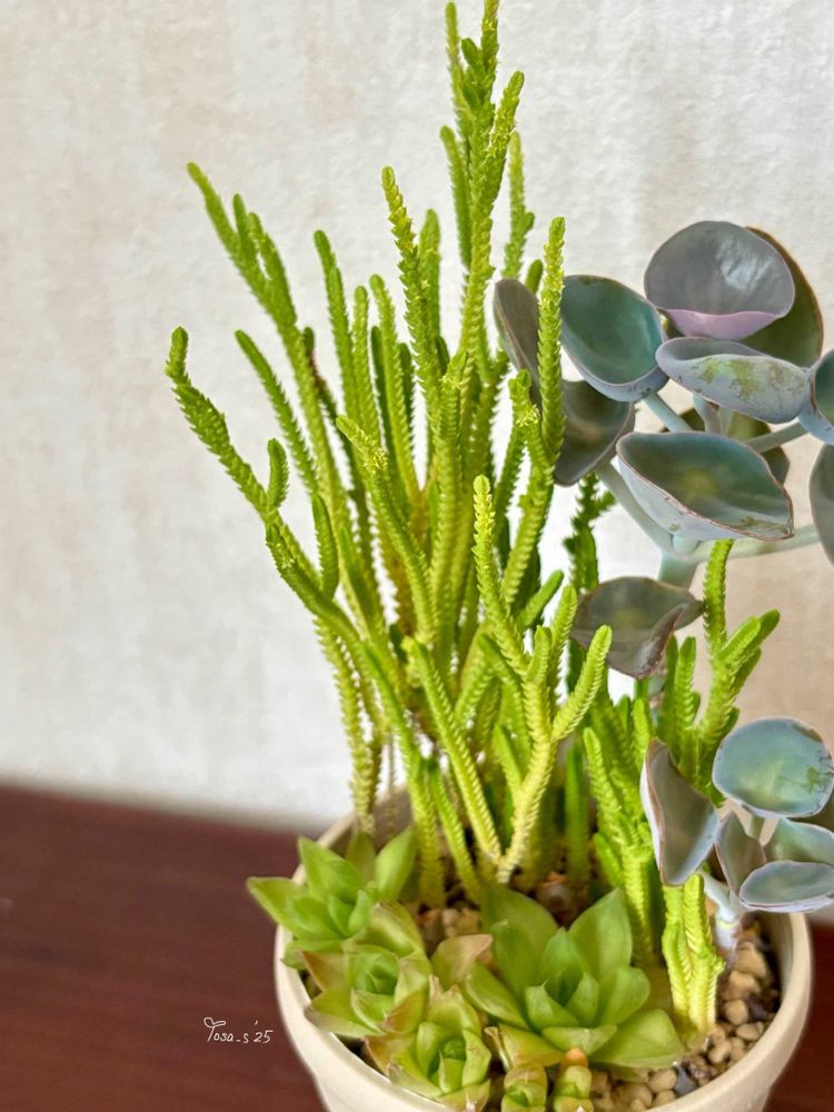 寄せ植えの若緑はずっと窓際で黄色に近い💛