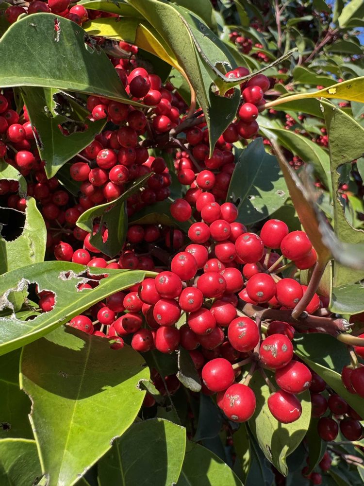 常緑のクロガネモチは青青した少し厚めの葉の中に沢山の赤い実がなります