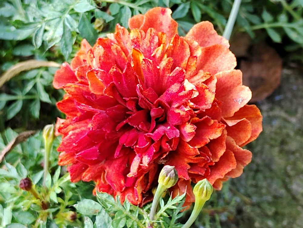 アパートが出来てから、日当たりがイマイチになってしまった庭に家庭菜園を作っているので、地植えのマリーゴールドは十分に成長出来なくて申し訳ない気持ちになります🥲