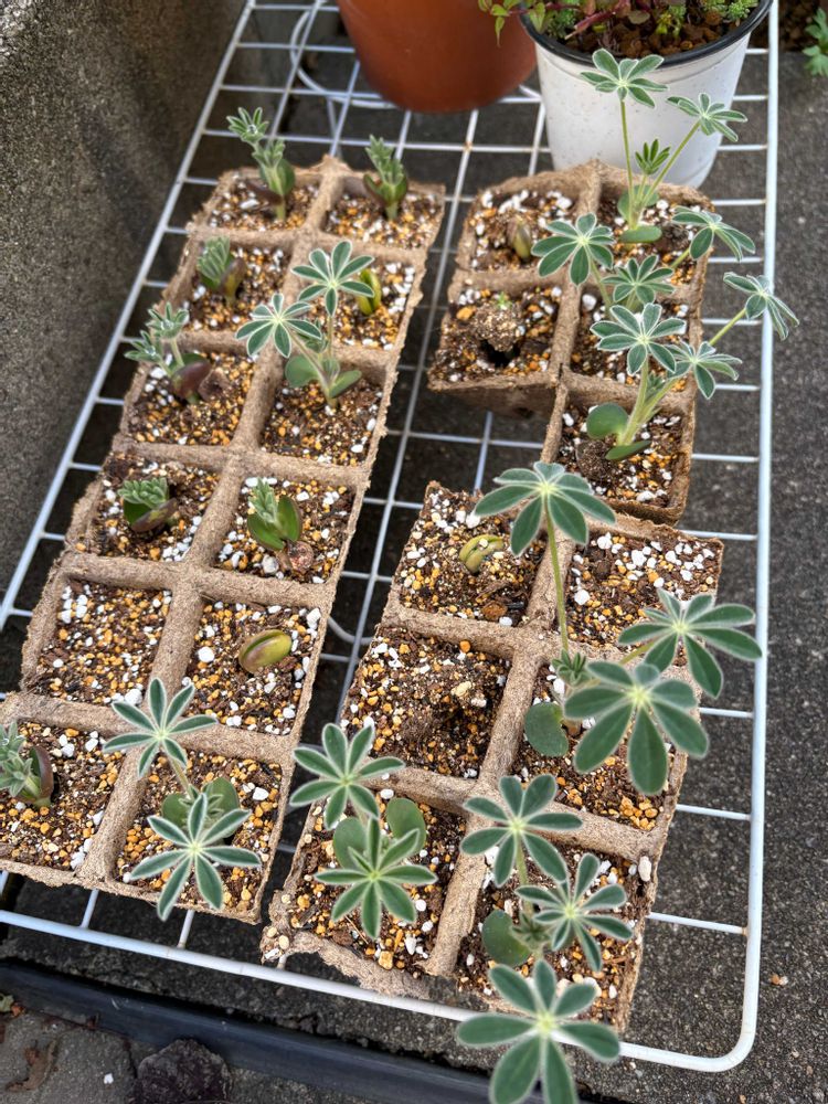 1️⃣10月20日に種まきしたルピナスです。葉が可愛くて好き🫶発芽率は90%と、とても良いです。(21/23個が発芽🌱)