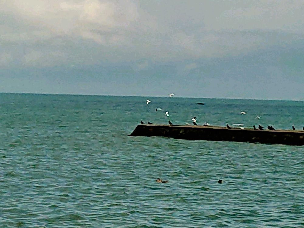 いま満潮時で、防波堤の先には必ずカモメ?と思われる鳥の姿が見えます😉‼️