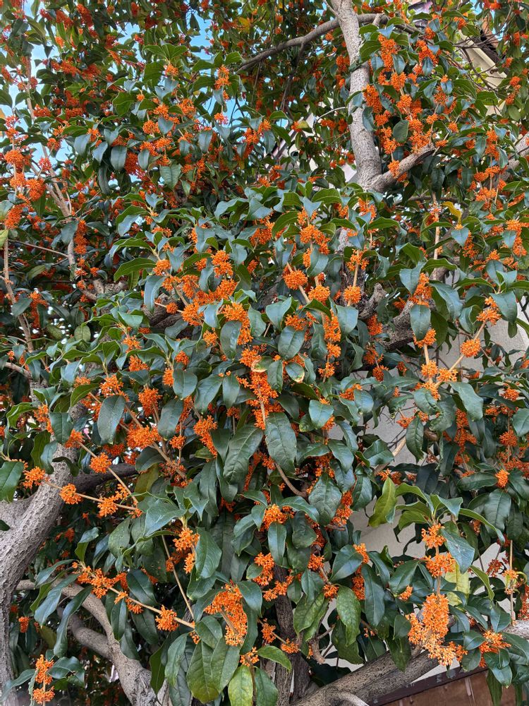 スイフヨウのあるマンションの前のお家にキンモクセイがつぼみから満開になりました🧡🌿