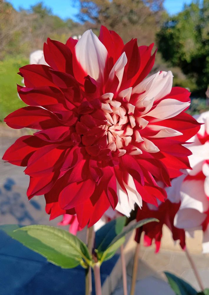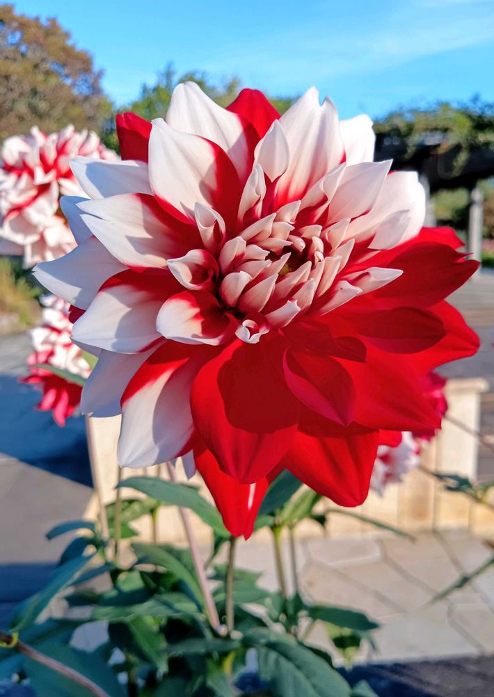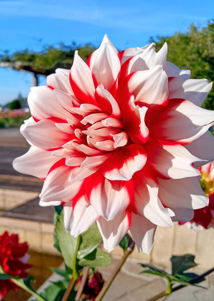 華やか❤️🤍なんて綺麗なダリアなんでしょう!赤・白の花びら「金魚花火」って言うんですね、名前の通り、金魚を想像出来ます。はじめて知りました🤩