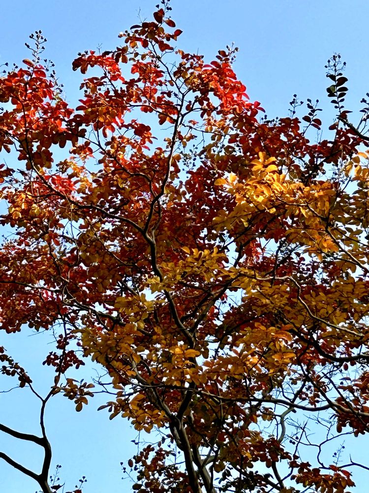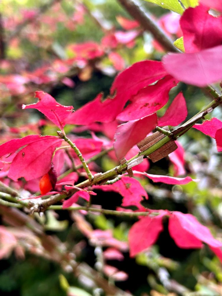 毎日の散歩公園も少し色づいてきました🤗ニシキギが真っ赤に、サルスベリも紅葉してますが、イロハモミジハはまだ全くの青モミジです🌿🍁🌿🍂🌿