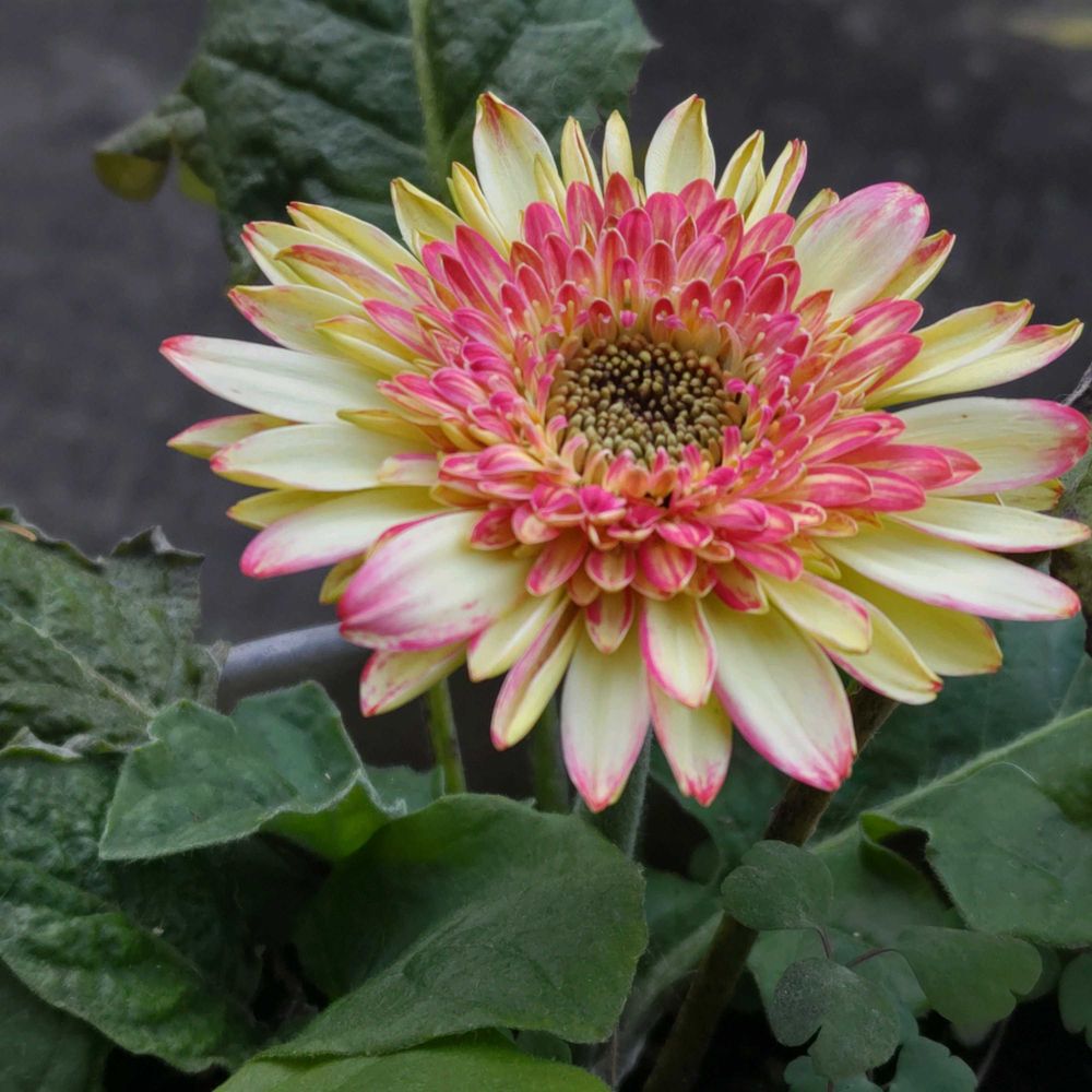 数種ある中で唯一咲き始めた八重咲きガーベラ