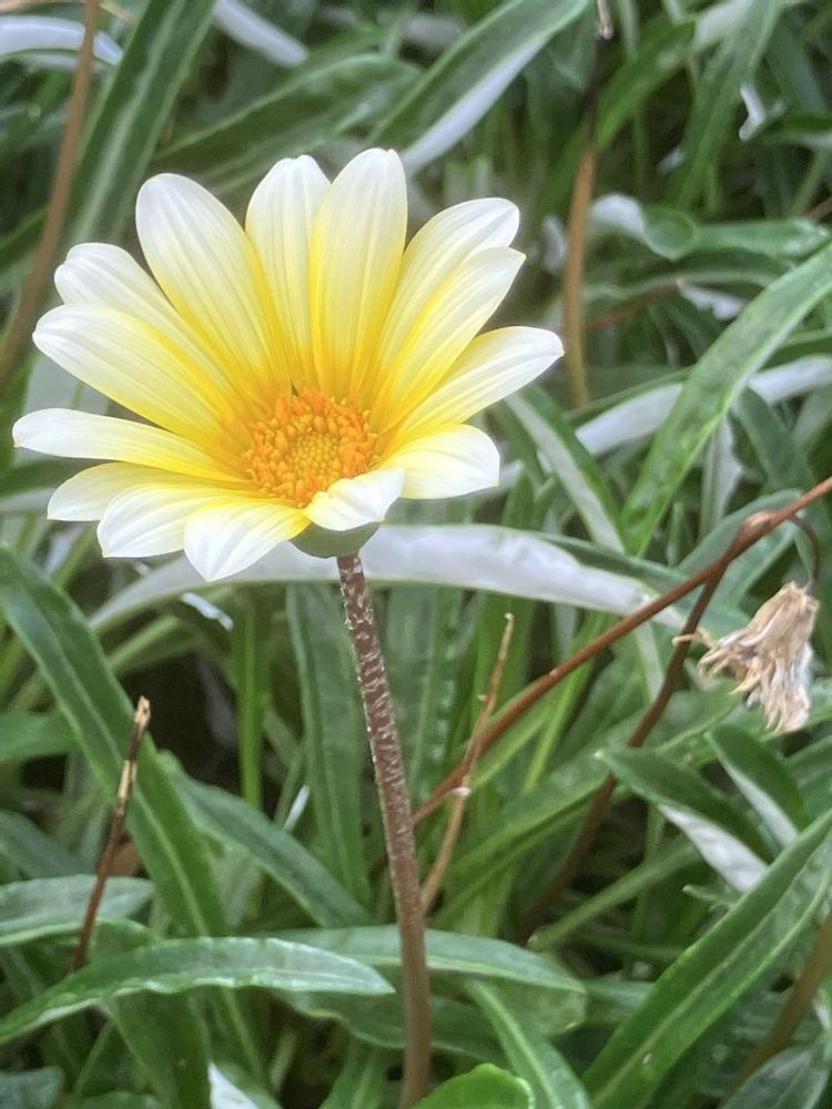 写真は、散歩で見つけたガザニアです。