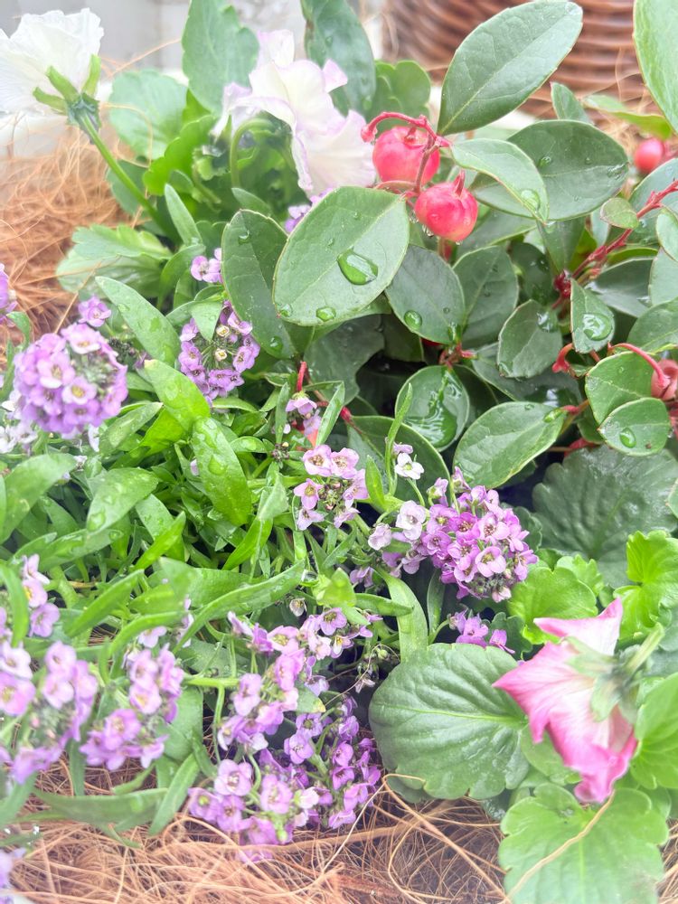 優しい色合いで可愛いチェッカーベリーとアリッサム〜とっても素敵ね💓