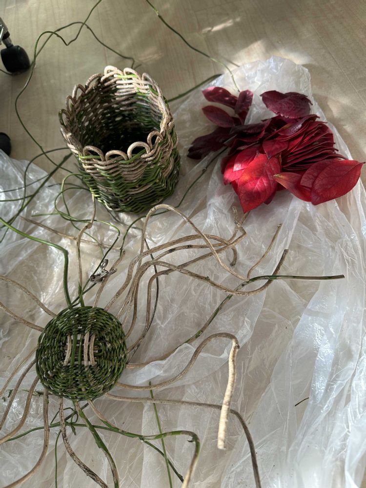 クネクネのツルでのカゴ編みは、難しい!けど味のあるのが出来るのかな?